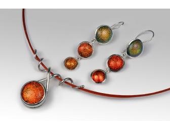 Fused glass and silverwork Necklace 18long, earrings 2.1 long.