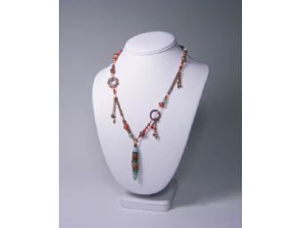 Lampworked beads, handmade chain, copper and carnelian stones 18 long