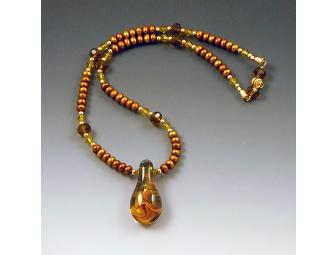 Borosilicate glass focal bead by the artist. Freshwater pearls, crystal beads, 14k beads. 18.75 long 2012