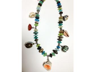 Lampworked glass, labradorite, sterling silver. 20 long