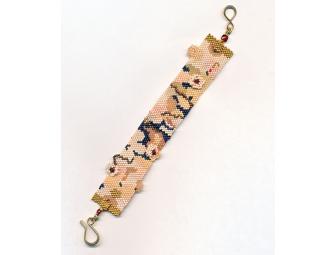 Weaving; glass beads, 22KT Gold, gems, and thread 7 long Signed