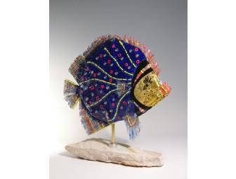 Glass, glass rods, enamels, 22K Gold, fine silver foil. 17h x 16w x 2d Signed, 2012