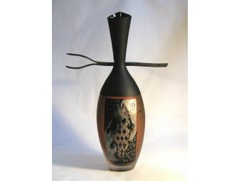 Blown glass with silver foil, sandblasted, metal 13h x 8.5w x 3.5d Signed, 2010