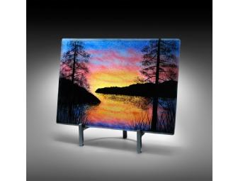 Clear sheet glass with frit, LED light, steel stand 11.5h x 14w x 5.5d Signed, 2011