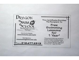 Swimming lessons for one year! One person may enroll in a lesson of their choosing during each of the sessions: Fall I, Fall II, Winter, Spring I, Spring II and Summer.
