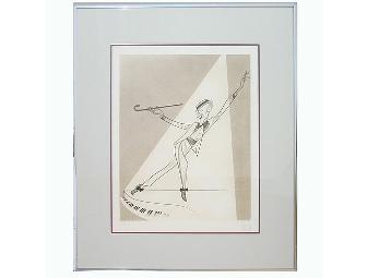 Donated to the Broadway Flea Market and Grand Auction by Mr. Fosse's estate, the artwork has been restored to its original splendor, with the autographed mat moved to the back of the frame and protected by a second sheet of Lucite to prevent fading