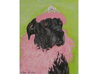 From the artist: "This is a painting I did years ago of a Great Dane named Haus, he was in drag. :) I've always liked this painting and thought the pink boa was appropriate for the event!"