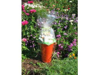 This collection will get you on your way to growing prize-winning tomatoes next year, including a book on growing tomatoes, a trowel, velcro for plant tying, gardening gloves, and a $20 Gift Certificate-- all in a Parisian cut-flower vase.