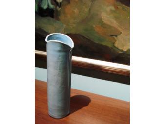High bidder receives a 14" tall, sky blue vase, hand made by national-selling ceramic artist Judy Charlick of Cleveland Heights.