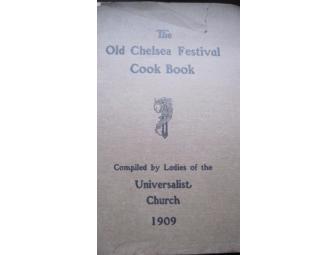 "The Old Chelsea Festival Cook Book, compiled by ladies of the Universalist Church, 1909." There's no explanation of what the Chelsea Festival was, but presumably this is from Chelsea, Mass. Recipes include Scotch Woodcock for the Chafing Dish, and Clam bouillon topped with whipped cream for the soup course. A fascinating look into the cooking habits of Universalists long before they became Unitarian Universalists. Many recipes have the names of church members, such as Miss Mary L. Slocum, Eloise H. Moon, and Anna Sibley. Enjoy a piece of history with your Divinity.
