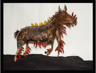 The Last Ride is glass enamel on copper and measures 11" by 13". A fee of $15 will be added to the final bid for shipping & handling.