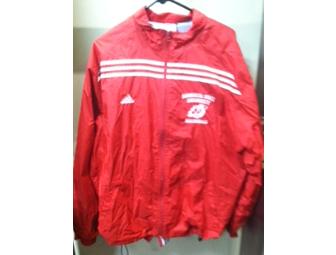 Be comfortable and look great in this Dragon red and white track suit. It is an Adult XL zipped jacket and drawstring pants.