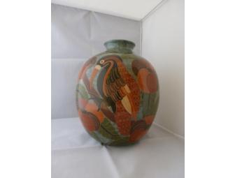 Pottery with indigenous designs. Made in the potters' village of San Juan de Oriente. Signed by the potter. Measures 8" at widest point and 9.5" tall.