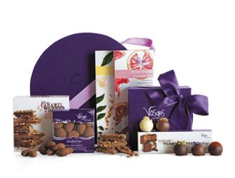 Vosges Haut-Chocolat presents you with their signature "La Petite Hatbox" - a decadent collection of mouth-watering treats. The basket includes an exotic truffle collection, caramel toffee, almonds, peanut butter bonbons, multiple candy bars, and more! The Vosges Haut-Chocolat Hatbox is meant to evoke a lovely lady: her luxury, her travels, her individuality. And you can reuse the hatbox after you've devoured the incredible candy inside! Indulge in style with the company Food and Wine Magazine calls "the top innovator in chocolate."