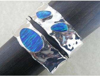 Sterling Silver Cuff Bracelet with lab-grown Gilson Opals from Caravan Gallery.