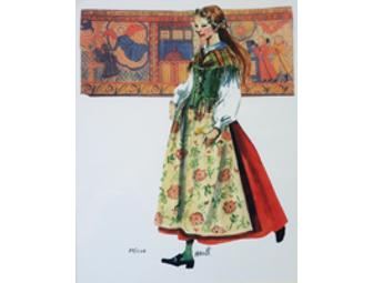 This lovely framed 14" x 18" print depicts a young women in her traditional Norwegian bunad. The award winning artist, Sharom Aamodt, is the granddaughter of Norwegian and Swedish immigrants. She hopes to link her audience to their past through her artwork.