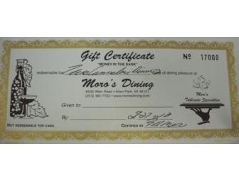 Moro's has worked for more than 25 years to create an aroma and taste that will bring you back! Place your bid on this gift certificate for Two Cannelloni Dinners at Moro's of Allen Park today!