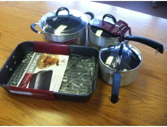Place your bid on this set of nonstick pots and pans which includes: