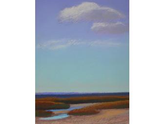 Pastel Landscape, framed size is 14 x 11 inches, framed in white wood with nonglare glass, gallery value is $400, location painted is Lieutenant Island, Wellfleet, 2009.