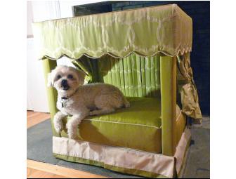 Purrfect for kitty or howlingly haute for pooch: James Rixner pulls out all the stops for his one-of-a-kind canopied bed. Glamorous chartreuse is offset by cream complete with piping, box pleats, side drapes with tie-backs and removable cushion. Legendary fabrics house F. Schumacher & Co. provided the fabric for Rixner's work.
