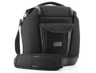 Quick access zipper design makes this case fully accessible at your side. The two lens compartments zip downward with a single motion. Quick-draw main compartment zippers are connected by a nylon puller for one-handed operation. The internal camera suspension system holds your camera's weight & lens like a hammock. Your camera body rests on the suspender as your lens is allowed to hang securely without making contact with the bottom of the case. Detachable shoulder strap & carrying handle let you decide how to transport your gear.