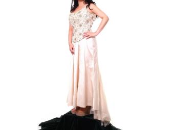 You'll look beautiful and feel like a princess in this Gigi Clark Tafetta Trumpet Skirt and Beaded Corset. The corest fits a size 6 and skirt fits 8-10.