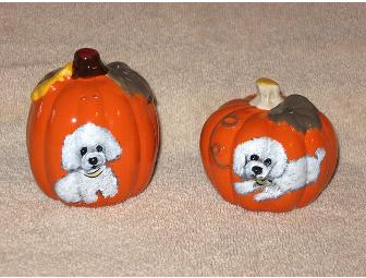 Each shaker has a hand painted Bichon on it, done by artist Paula Holoman.