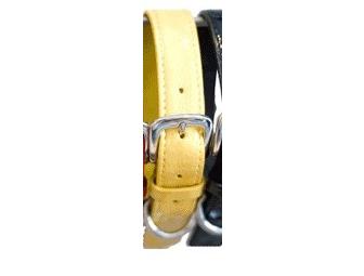 true to their name, our city slicker styles are shiny and bright, just like the big city. made of dog-resistant polyurethane and backed with full-grain leather, our collars and leashes are finished off perfectly with shiny silver-finished hardware.