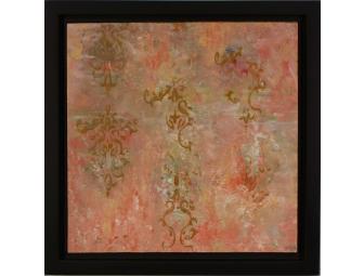 A circa 1969 pattern that has stayed with the artist. Mim created a stencil that replicated her vague memory of the wallpaper in a room on the second floor of her childhood home. She’ll never know if she's accurate, but personal recollections are completely entitled to creative license.