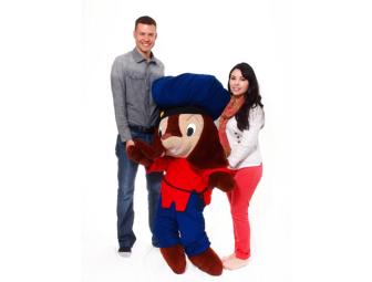 Fievel, the beloved star of "An American Tail", stands nearly 5' tall as shown in the pictures with LAUP staff members, Ben (6'2") and Maria (5').