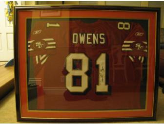 San Francisco 49'ers autographed Jersey- Terrell Owens. This Jersey is beautifully framed in a cherry/black lacquer frame. The overall frame dimensions are 44"wideX 33 1/4" long.