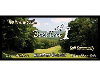 Bent Tree Country Club offers one tee time for four golfers (a foursome) for one round of 18 holes with golf cars. Please reserve tee time in advance. Restaurant available, but no lodging. Certificate expires Aug. 17, 2013. Bent Tree Golf Course, located in the North Georgia Mountains in Jasper, Georgia, is designed by the renowned course designer Joe Lee. It's a challenging 18 holes - a par-72 course measuring 6,410 yards from the back tees with a 71.2/130 rating. There are three other sets of tees - burgundy at 6,122 yards (70.6/129 rating), white at 5,765 yards (68.9/128 rating) and forward tees, measuring 4,810 yards (69.5/119 rating). The course meanders past waterfalls, mountain streams and brooks and boldly confronts the broad shoulder of Sharp Top Mountain. It's a deceptively tranquil setting for a course that requires accuracy at every turn. Complete with practice range, putting green, and practice bunker, all of the greens and bunkers were completely rebuilt in 2001.