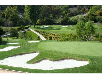 Hacienda has a rich history in the world of Southern California golf. It has been the site of countless qualifying tournaments for important amateur and professional events, and has hosted the Southern California Golf Association Amateur Championship three times. Haciendas first course record was held by Gene Sarazen, with a score of 70 in 1923. Prior to the recent golf course renovation project, the course record was held by Tiger Woods, who carded a 62 on his way to winning the SCGA Amateur Championship here in 1994. Hacienda is proud that of the five players in the world who have won the career Grand Slam in golf, Haciendas course record has been held by two of them. Hacienda offers on tee time for three golfers to play 18-holes with golf carts. No denim or cargo shorts - golf attire is required. Tuesday after noon or on Wednesday, Thursday and Fridays for play. Contact the facility for tee times and to complete a foursome. Certificate expires March 31, 2013.