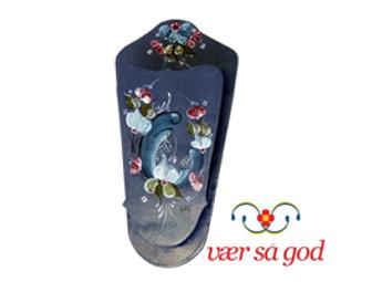 Can't find your scissors? This handy scissors holder would look great on any wall. Rosemaled by Helga Kennedy in the Telemark style, yours for the right bid. It measures 8 1/2 " long by 4 1/1" wide. Done in shades of blue with white and rose accents on a Norwegian blue background. What a great gift for anyone of Norwegian heritage.