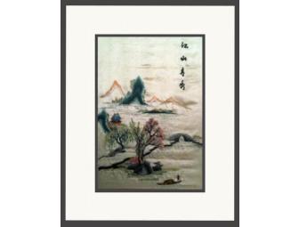 Highest Bidder wins a lovely framed Antique Japanese Emboidery on Silk framed by Wood Trader using archivally protective framing (approximately 21" wide by 26' high).