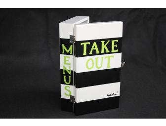 Organize all of your take-out menus which are piled up in your drawer, into an attractive, sturdy wooden box. Keep all of your menus in one place, so take-out is a snap. Box dimensions: 12" x 6" x 3".