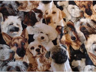 Here is a full coverage apron that ties around the neck and back of the waist. Many dogs are featured in the pattern, but of course the darling smiling bichons stand out. Cotton material. Wash and hang to dry. Purchased at an artisans craft show just for this auction!