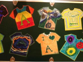 The 19 students in Miss Roach's third grade class created their own art work to personalize a dark green Happy Camper Footlocker from EverythingSummerCamp.com. The t-shirt shaped magnetic art can be rearranged in numerous combinations. The fabulous footlocker can be used to store Armstrong treasures at home or head to summer camp.