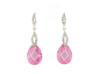Gorgeous earrings in sterling silver with brilliant round CZs and sparkling pink CZ briolettes. Perfect for the woman who loves anything pink! These earrings are elegant, beautiful and perfectly pink! Black gift box included.