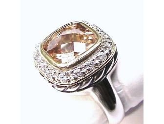 Beautiful two tone sterling silver ring with a faceted citrine colored CZ center stone. This is a very modern, elegant ring you will enjoy wearing for any occasion! Size 7. Black gift box included.