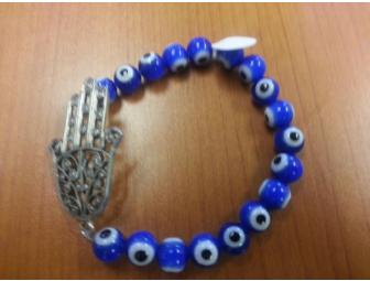 Blue Bracelet with Hamsa Pendant Alef Bet by Paula