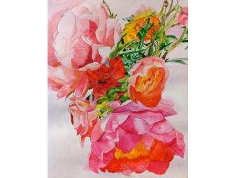 High quality giclee matted fine art print measuring 16"x 20" of a spring floral still life. Speciifically this is from a photo of peonies in a California garden taken spring 2011.