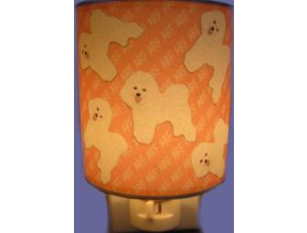 This night light features the artistry of Elvie Zell. It will provide beautiful, soft accent lighting to illuminate your way. The plugs rotate 360 degrees to accommodate vertical or horizontal outlets, and the shades can be tilted for decorative effect. The shade measures approximately 4" high and is dust, heat, fire and water resistant.