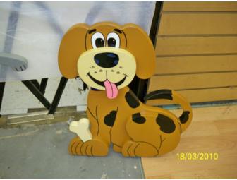 "Bones" Dog would look so cute in your yard or garden. He is 171/2 " High and 16" wide, made out of cabinet grade plywood, layered and sealed. All hand made in the USA with USA made products. A hangar can easily be put on the back for hanging.
