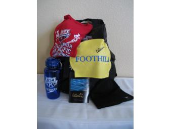 This package includes a gently used Speedo Zone Select Camp Backpack (signed), 2012 Jr. Pan Pacific Championship T-shirt, Black Speedo Wool Cap, Foothill Swim Cap (signed), Olympic Trials Photo, and Speedo USA Swimming Water Bottle.