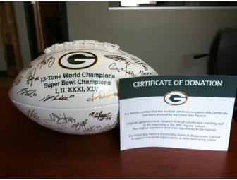 This officially autographed football features replica signatures from all the coaches and players of the 2011 Green Bay Packers.