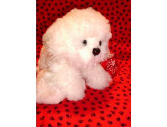 THIS SWEET LITTLE BICHON PUP, "MUFFIN" WILL WIN YOUR HEART OVER. SHE HAS THE TAN SHADING ON THE EARS THAT MOST PUPS HAVE. AND OF COURSE THE LOVING, BLACK EYES & THE LARGE BLACK NOSE.