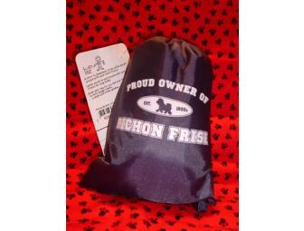THIS DELIGHTFUL BICHON VALUE PACK INCLUDES A WHITE, SIZE LARGE "PROUD OWNER OF A BICHON FRISE" T SHIRT, A PAIR OF LOW CUT WHITE SOCKS & A NYLON "BICHON FRISE" POUCH.