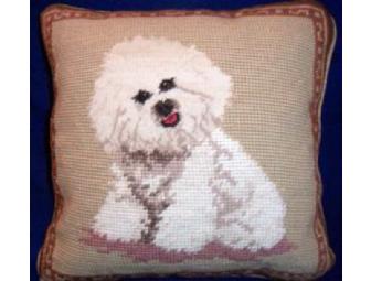 Adorable 10" square needlepoint pillow. Threads are wool and backing is 100%