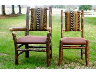 These lodge-style dining chairs feature rustic construction reminiscent of classic mountain chalets. The set features two armchairs and four standard dining chairs, creating a perfect set to add an authentic American flair to your dining room.